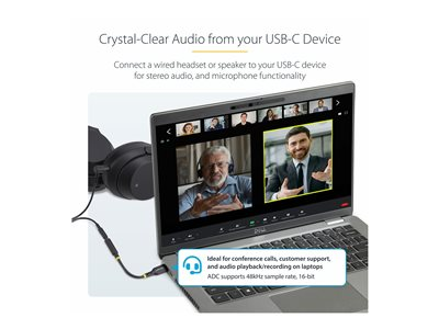 USBCAUDIO2 - StarTech.com USB-C Audio Adapter to 3.5mm TRRS Jack, Headphone Aux Dongle