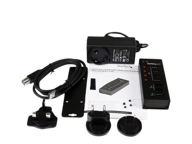 ST4300U3C3 - StarTech.com USB 3.0-hubb med 4 portar plus 3 dedicerade USB-laddningsportar (2x 1A & 1x 2A) ? väggmonterbart metallhölje